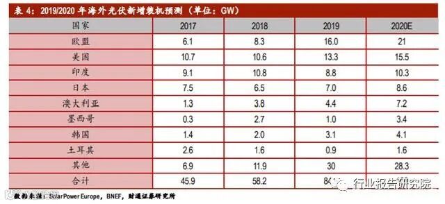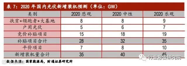 国内方面,光伏竞价结果落地,总规模达 25.97GW,项目规模可观。此次度电补贴强度大幅降低,逾期补贴降低仍维持 0.01 元/kWh,且组件价格下降预期较弱,预计 2020 年竞价项目大部分有望在年底前实现并网。叠加去年竞价项目抢装及平价和户用市场向好,全年装机预期乐观。
