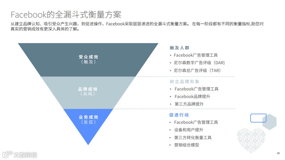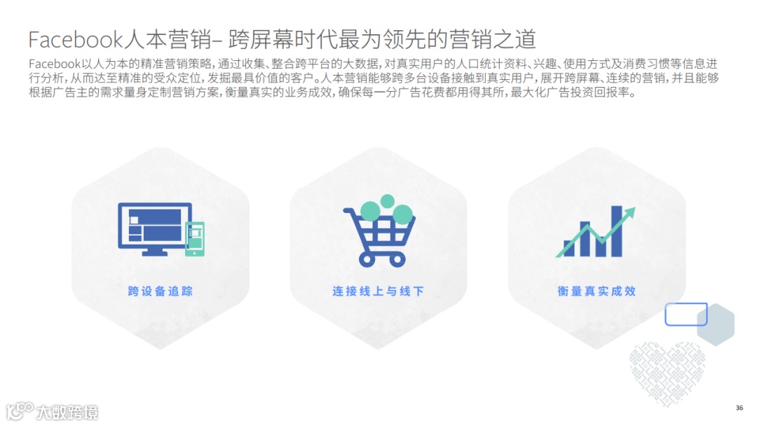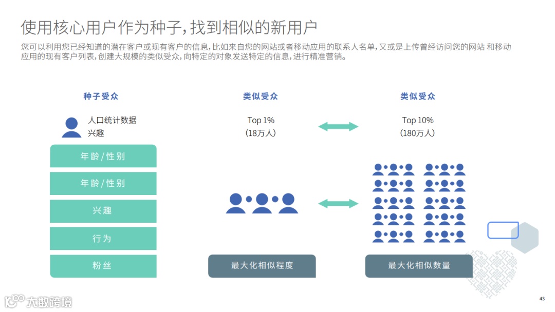 与此同时,像素作为一段代码,是Facebook广告运营的基石。它利用标准事件追踪用户的操作,所以商家可以利用像素来定制专属受众。像素可以完成再营销,提醒未购物的用户进行下单,或实现交叉销售和追加销售。系统还能够根据像素,找到类似的高价值用户。