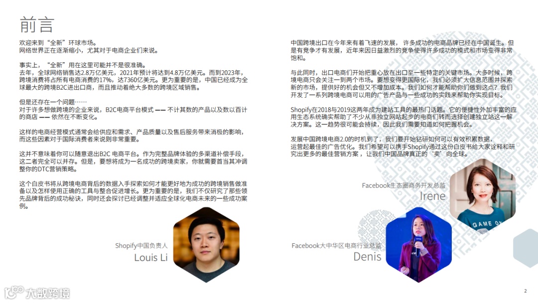 在DTC时代下,专业的Shopify固然为出海电商搭建起品牌的门户,使其轻松拥有自己的独立站。可是这只是第一步,想要长期而稳固的业务,流量永远是重中之重。Facebook在全球拥有逾20亿优质用户,不但是流行的社交平台,更是商家经营业务的强大渠道,全球绝大多数跨境消费者都是Facebook旗下应用的活跃用户。此次“2019澳门国际创新节”上,Facebook与Shopify强强联手,推出《Facebook X Shopify中国跨境电商迈向全球》白皮书,并由Facebook发表主旨演讲。
