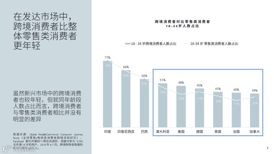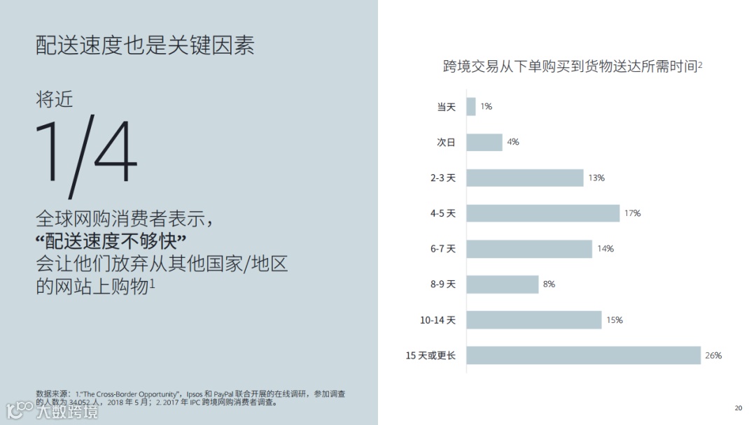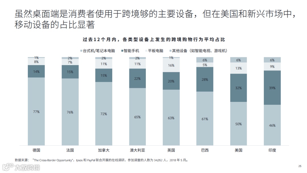 未来,出海电商业务前景广阔,下一个增长时代已经到来。预计到2020年,全球跨境网购消费金额将达到1万亿美元,比2018年增长近50%,且全球大多数消费者都有过跨境消费经历,其中美国、英国和德国是主要跨境消费市场。在不久的将来,消费者愈加期待获得更流畅的移动购物体验,比如希望广大品牌能够提供一键购买服务。