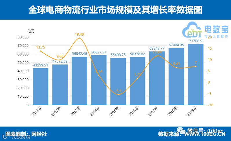 全球电商物流。《报告》显示,2019年全球电商物流行业市场规模达71700.9亿元,同比2018年67004.95亿元增长7%。网经社电子商务研究中心特约研究员、中国物流学会特约研究员解筱文表示,从整个发展大局和战略层面看,中国快递企业“出海”之路,充满机遇,大有可为。