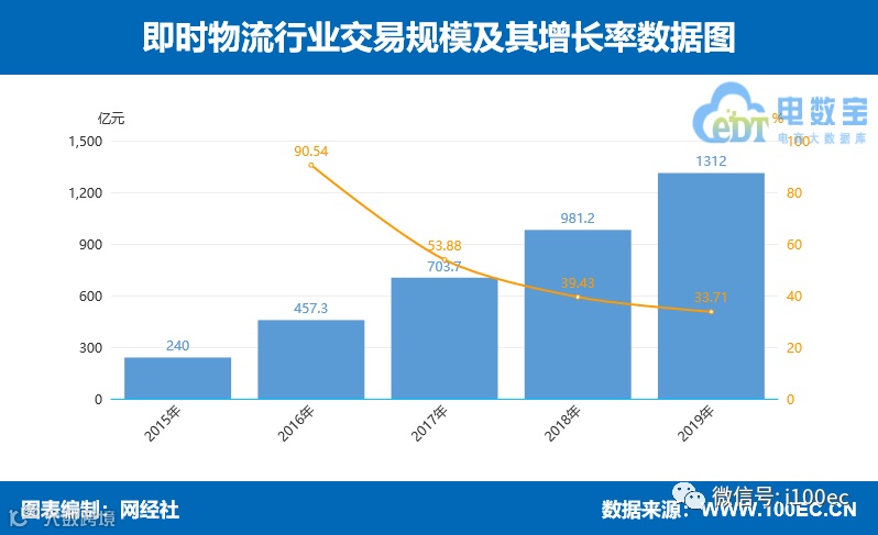 即时物流。去年即时物流市场规模1312亿元,较2018年981.2亿元同比增长33.71%。用户规模达4.21亿人,较2018年3.58亿人同比增长17.59%。目前,国内的即时物流主要有美团配送、蜂鸟即配、闪送、达达、UU跑腿、顺丰同城急送等,且具有较高的知名度和消费认知度,先期已主导性占有市场。《报告》还显示,2019年即时物流订单规模达186亿元,同比2018年134.4亿元增长38.39%。