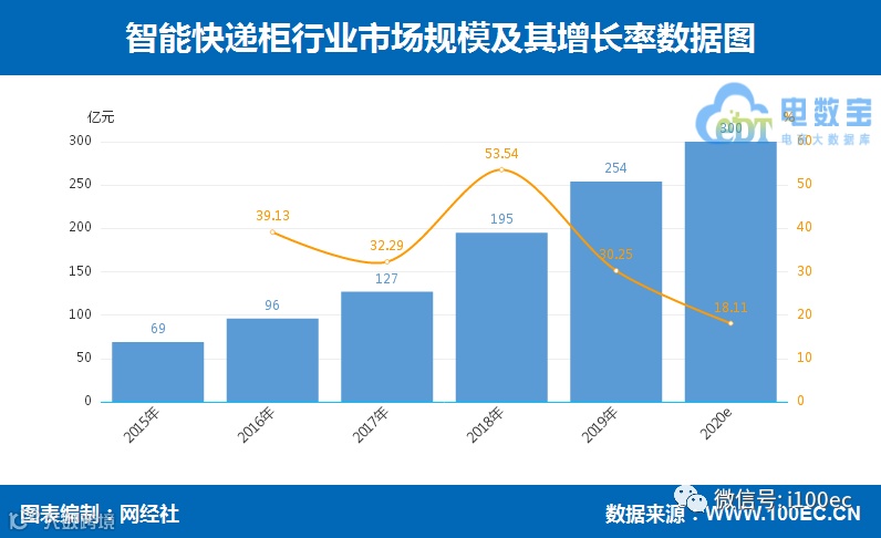 智能快递柜。2019年智能快递柜行业市场规模为254亿元,较2018年的195亿元,同比增长30.25%。预计2020年智能快递柜市场规模将近300亿元人民币。2019年主要城市布设智能快件箱已达40.6万组,新增13.4万组,增幅接近50%,箱递率超10%,为末端投递提供有效补充。