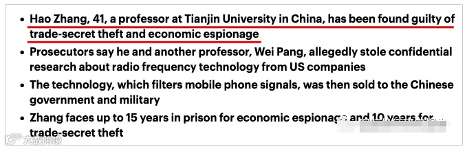 近日,美国司法部宣布了一件骇人听闻的事情:41岁的中国科学家张浩触犯美国经济间谍罪、窃取商业秘密罪和共谋罪。