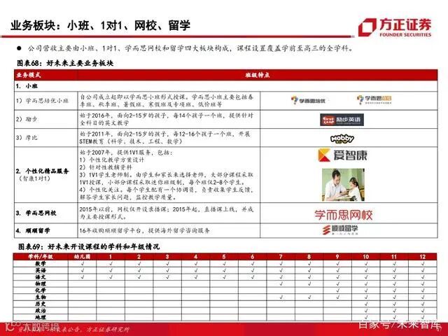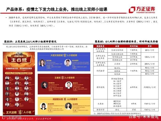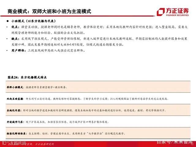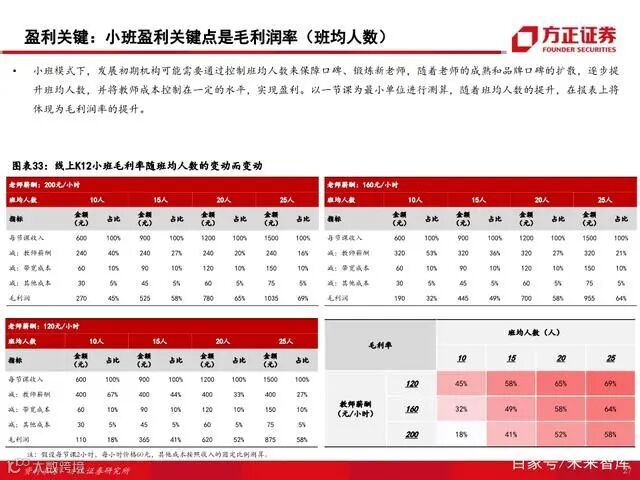 小班:盈利关键点是毛利率(班均人数)。线上互动小班模式(以东方优播为代表)的优点在于课堂互动强、教学体验更好、 获客成本低;采用本地化教研内容针对性更强;进入壁垒较高,需要大规模培养和管理老师的能力和经验,以及较强的企业文 化;报告节选: