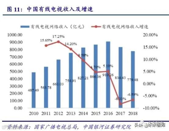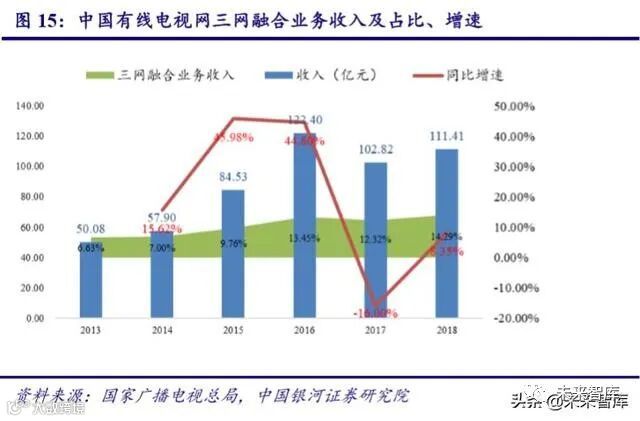 1.有线电视总收入缓慢下滑,唯三网融合业务收入上升