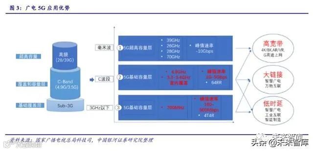 700MHz 频段被看做是发展移动通信的黄金频段,具有信号传播损耗低、覆盖广、穿 透力强、组网成本低等优势特性,而且适合 5G 底层网络。所以,理论上来说,中国广电 在 5G 建设上有着十分大的优势。