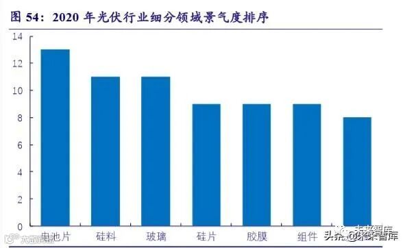 2020 年景气度排名:电池片>硅料=玻璃>硅片=胶膜=组件>逆变器。我们按照“格局、 价格、技术”三个维度给光伏各个环节打分,每个单项满分为 5 分,总分为 15 分。从边际变 化来看,我们认为 2020 年 7 个细分领域从高到低排序为电池片>硅料=玻璃>硅片=胶膜=组 件>逆变器。