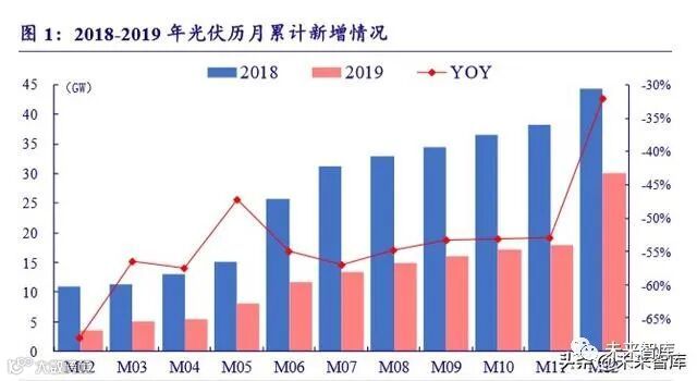 2019 年新增装机远不及预期。根据中国光伏行业协会(CPIA),2019 年我国光伏新增装 机 30.1GW,同比下降 32%,远低于市场预期,主要原因是补贴政策公布时间较晚、电网接入 意愿不足、运营商经营压力加大等。
