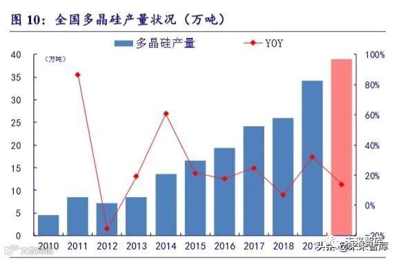 落后产能退出,行业集中度和国产化率双升。根据 CPIA,2019 年全国多晶硅产量 34.2 万 吨,同比增长 32%,预计 2020 年达 39 万吨。行业集中度高,国内年产量万吨以上的企业共 6 家,其产量约 28.7 万吨,占总量比重 83.9%。根据智汇光伏,受“531”新政影响,2018 年下 半年硅料整体开工率跌至约 60%,产能过剩问题较为严重,硅料价格持续下跌,倒逼部分高 成本产能陆续退出市场,具代表性的为韩国 OCI 和我国东部产能。