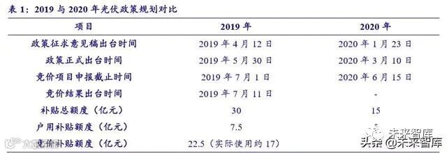 国内补贴额度确定,竞价项目准备时间延长。2020 年 3 月 10 日,国家能源局发布了《关 于 2020 年风电、光伏发电项目建设有关事项的通知》。《通知》明确了 2020 年新建光伏发电项 目补贴预算总额度为 15 亿元,其中 5 亿元用于户用光伏,10 亿元用于补贴竞价项目(集中式 +工商业分布式)。《通知》落地时间相对 2019 年提前约两个半月,超市场预期。虽然受到新 冠疫情影响,但今年的竞价项目申报截止时间仍比去年提前约半个月。我们认为,光伏补贴政 策的提前落地留给了企业充分的准备时间,且执行规则与 2019 年基本相同,或将有效避免出 现因为准备时间仓促导致项目质量差而无法推进的问题。