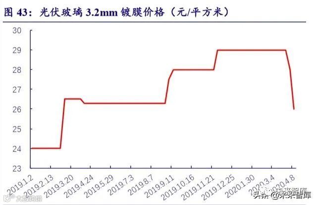 光伏玻璃价格支撑仍然较强。2019 年光伏各环节龙头企业持续扩产,在硅片、电池片、 组件大幅降价的背景下,玻璃价格却呈现出“淡季不淡”、“企稳回升”趋势。2019 年以来, 因双玻的广泛应用导致需求旺盛,光伏玻璃一直处于紧缺状态,价格不断上行,毛利率有所回 升。根据北极星太阳能光伏网,2019 年光伏玻璃经过 3 轮上涨,至 12 月末光伏 3.2mm 镀膜 光伏玻璃均价报价在 29 元/平方米,基本回升到 2017 年的水平。随着新冠疫情影响,2020 年 4 月光伏玻璃价格回落至 26 元/平方米。我们认为,随着国内市场复苏,光伏玻璃扩产难度大, 光伏玻璃价格仍有较强支撑。