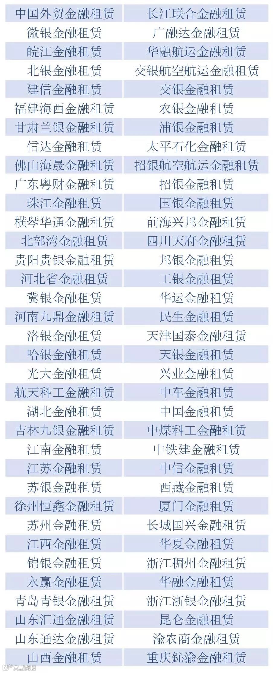 金融租赁70家: