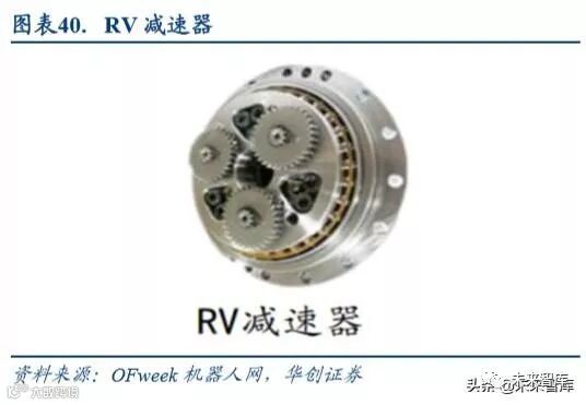 工业机器人一般使用 RV 减速器和谐波减速器,其中 RV(Rotate Vector)减速器是由一个行星齿轮减速器的前级和 一个摆线针轮减速器的后级组成。其中谐波减速器属于齿轮减速器的一种。