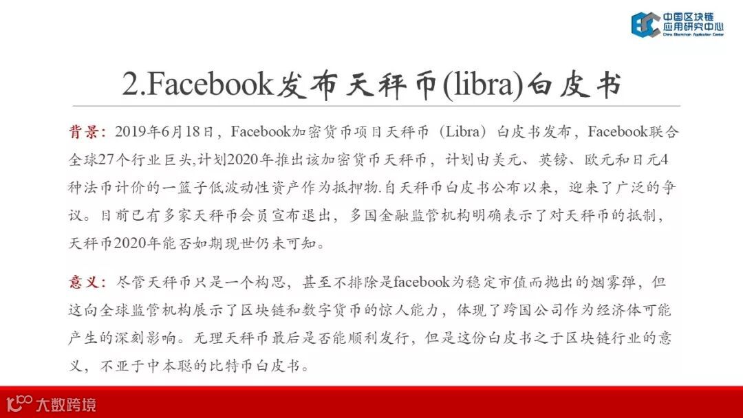 2019年对区块链来说是充满了机遇与挑战的关键性的一年。在后泡沫时代下区块链技术实现了一系列的创新和突破,Facebook等互联网巨头的区块链布局也让区块链走入了大众视野。一方面我们看到政府将区块链提升到国家战略高度,另一方面区块链在各场景的落地应用同样在加速发展。