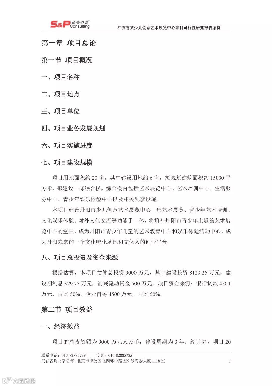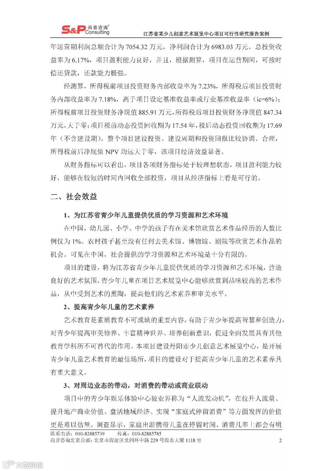 江苏省某少儿创意艺术展览中心项目可行性研究报告案例 尚普并购咨询