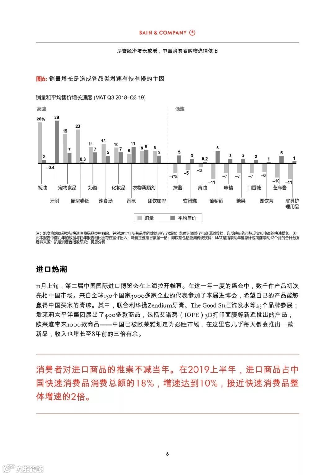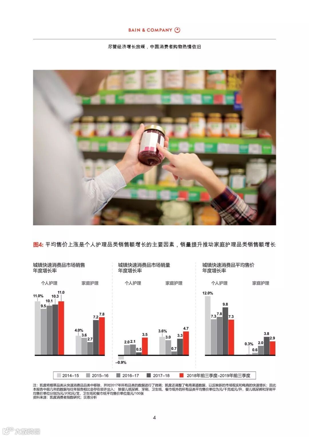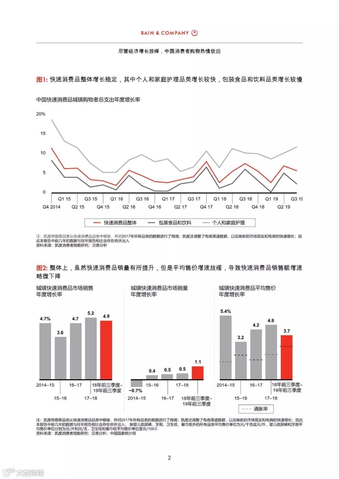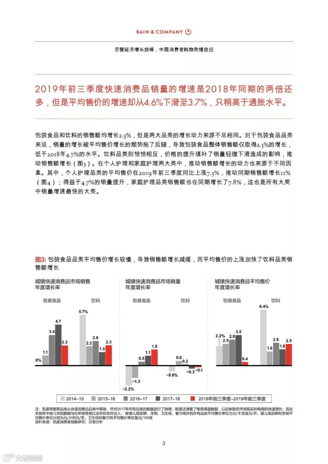 报告指出,尽管2019年前三季度中国快速消费品的销量增长较去年同期有所提升,但却依然无法抵消平均售价增速放缓带来的影响。报告显示,中国快速消费品的平均售价增速从去年的4.6%降低至3.7%,仅略高于通货膨胀率。