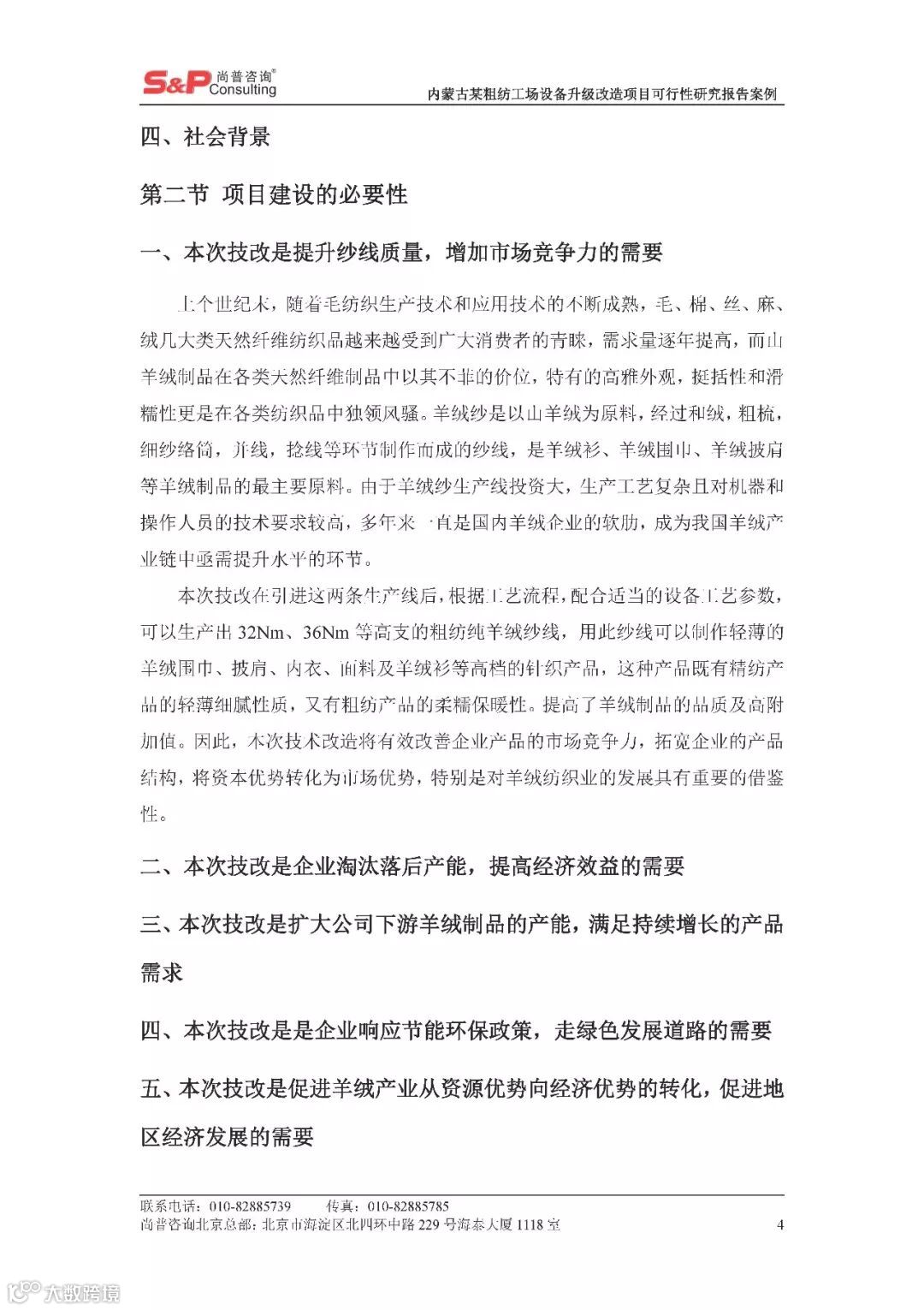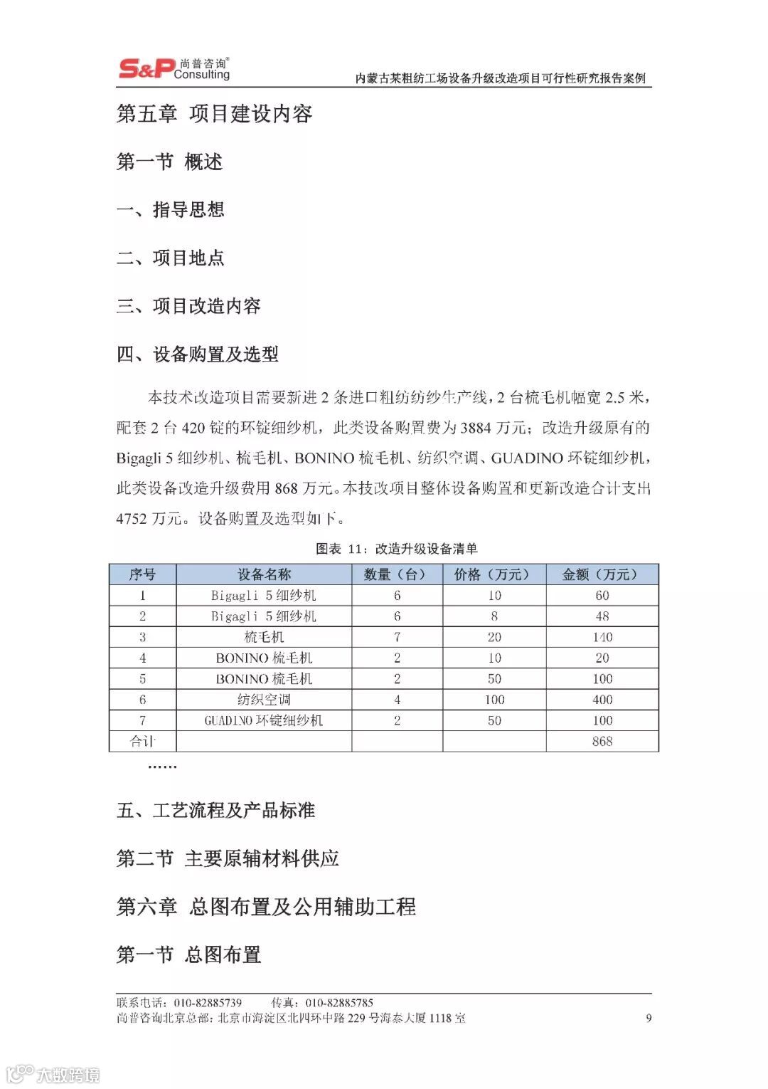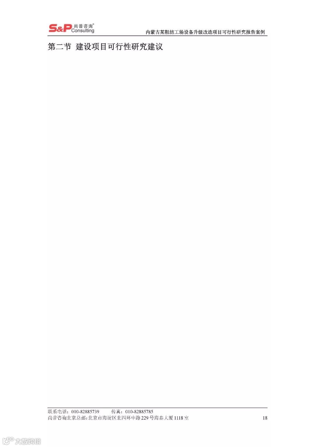 内蒙古某粗纺工场设备升级改造项目可行性研究报告案例 尚普并购咨询
