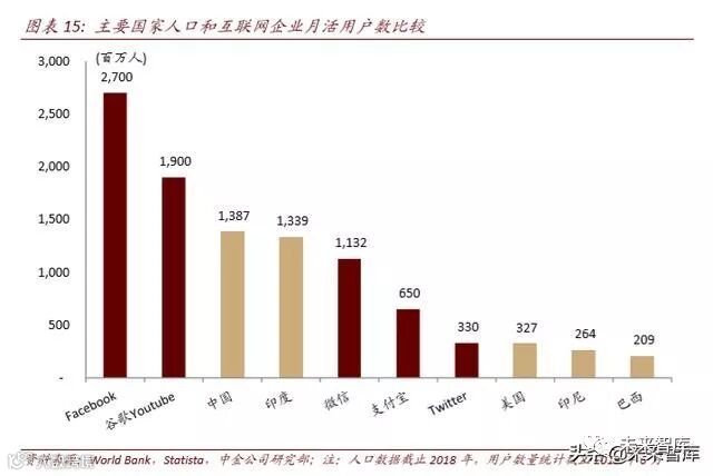 ► 网络效应(Network effects):目前,Facebook 旗下的各类产品(Facebook、Messenger、 Instagram、WhatsApp)合计月活跃用户数高达 27 亿,远超中国、印度等主要国家人口总数。FB 的用户可以便捷地接入 FB 下属子公司推出的 Calibra 钱包,使用支付、 转账等功能,我们认为这可能冲击现有的支付体系。据腾讯财报披露,截至 2Q18 微信支付的在微信(含 WeChat)用户中的渗透率达到 76%,这是微信支付在微信全 球用户中的渗透率,如果仅考虑中国用户,则渗透率会更高。