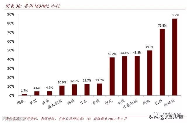 M0 增长趋缓、整体现金需求降低。央行数字货币用于替代现金,属于 M0 范畴,而 广义货币中的活期存款部分已由现有支付体系高效处理。我国银行间支付清算系统 (如大小额支付系统和网上支付跨行清算系统等)、商业银行行内系统以及非银行支 付机构的各类网络支付手段等运转高效,社会对于现金的需求逐渐降低。截至 9 月 末 M0 货币供应量为 7.4 万亿元、同比仅增长 4%、在 M2 中的比重降至不足 4%。