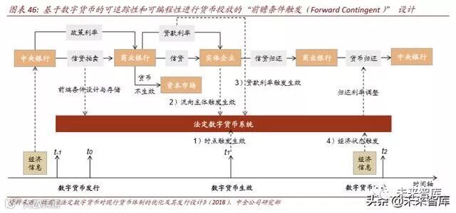 提升货币政策的前瞻性、及时性、有效性:数字货币的运用或帮助央行对货币供应 量及其结构、流通速度、货币乘数、时空分布等方面的测算更为精确,从而提升货 币政策操作的准确性。中证登总经理姚前在《法定数字货币对现行货币体制的优化 及其发行设计》所提出的,数字货币的可追踪性可以帮助央行追踪和监控数字货币 投放后的流转信息、获取货币全息信息,而其可编程性则可通过“前瞻条件触发 (Forward Contingent)” 设计,让法定货币很好地解决传导机制不畅、逆周期调控 困难、货币“脱实向虚”、政策沟通不足等传统货币政策困境。此外,随着数字货币 逐渐对现金的替代,也带来了负利率政策运用的可能——纸币作为一种零利率储蓄, 当负利率政策实施时将存款提现为纸币,造成“零利率下限”的政策困扰,而通过 对数字货币收取类似“保管费”的形式则等同负利率的效果。