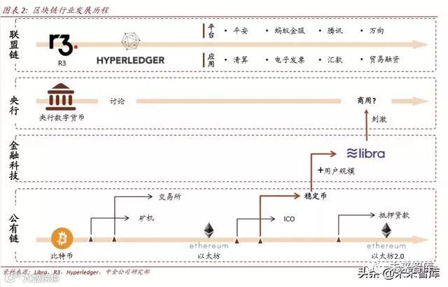 区块链按开发者可以分为由开源社区主导的公有链,及大型 IT 或金融企业主导的联盟链。在这篇报告里,我们沿着以下脉络系统性地分析区块链及数字货币行业: