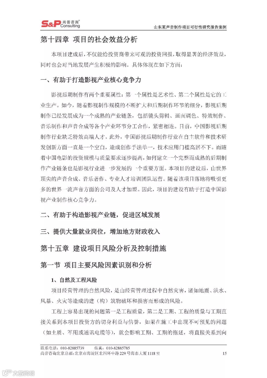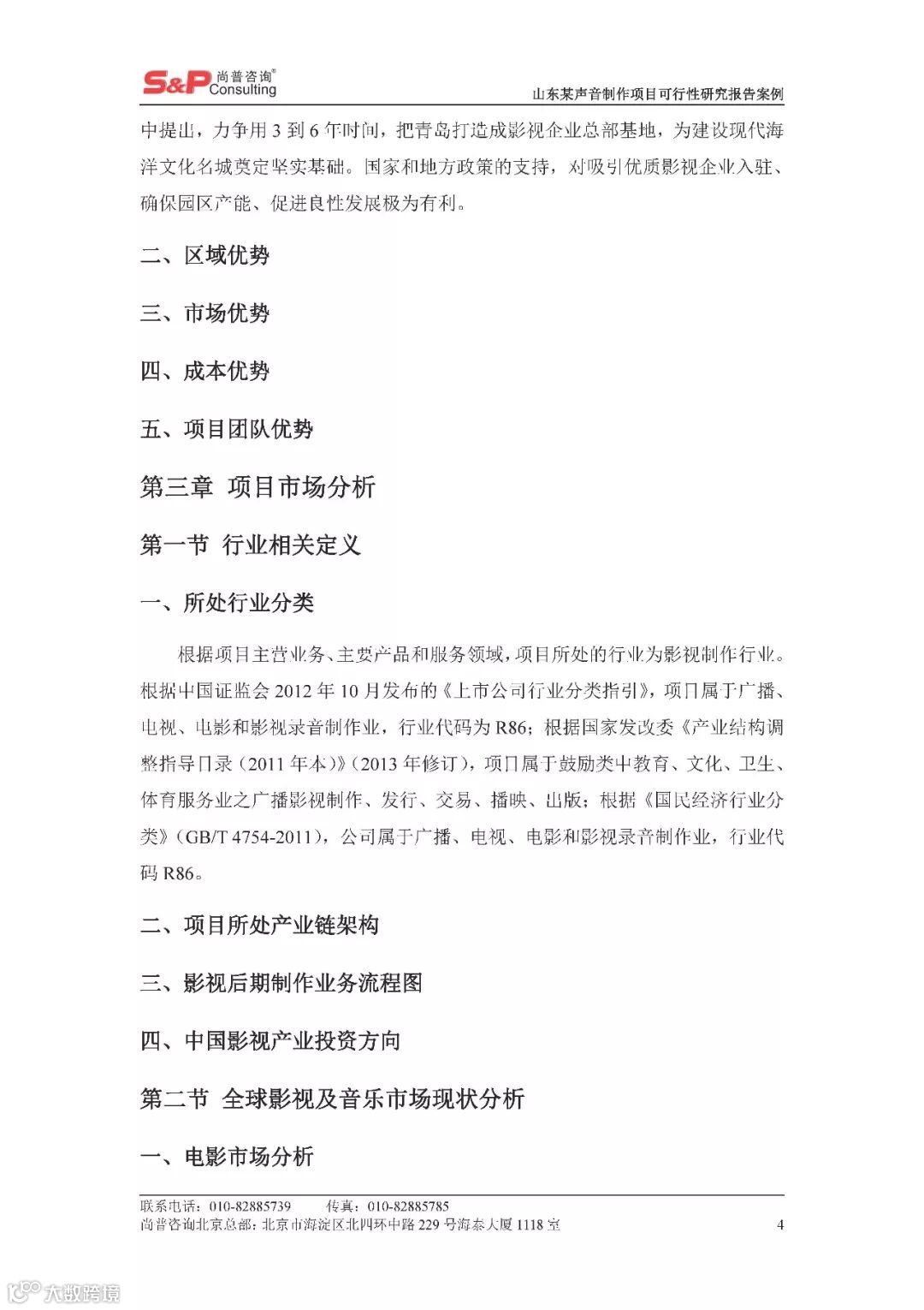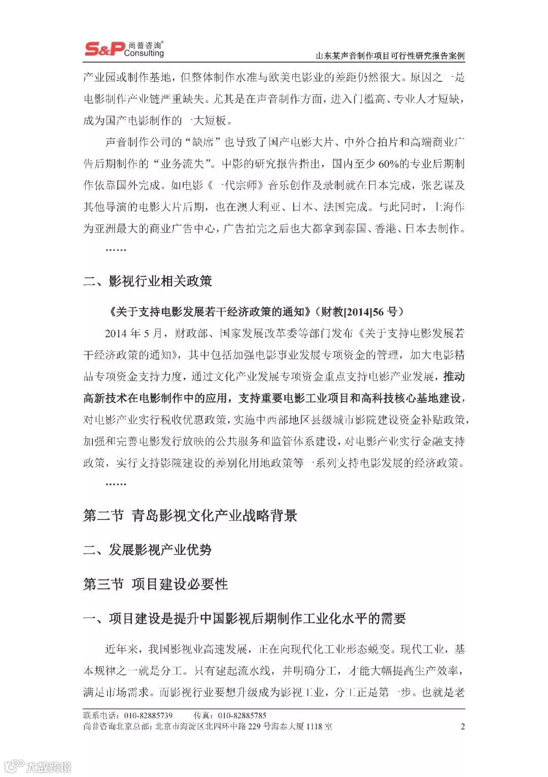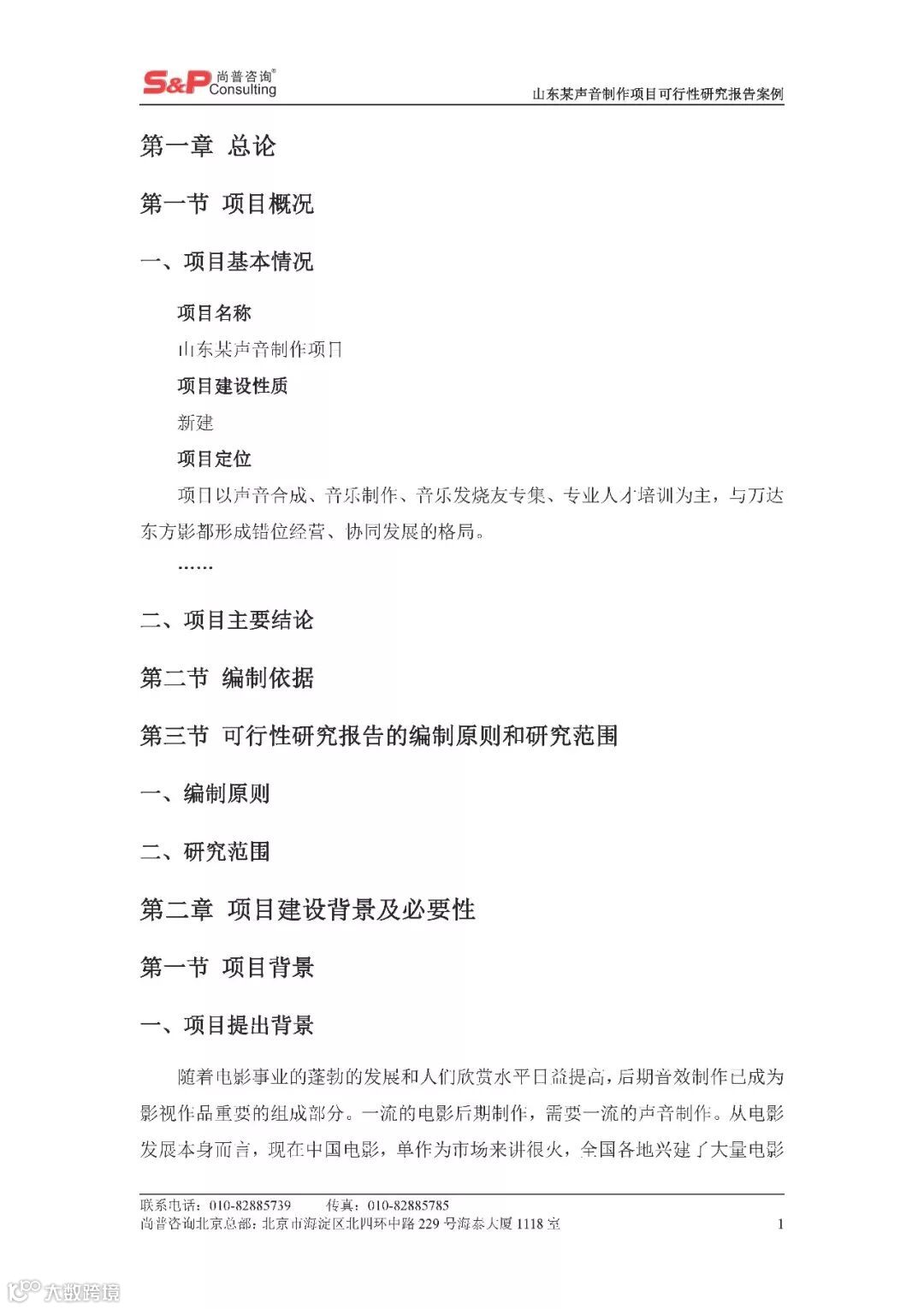 山东某声音制作项目可行性研究报告案例 尚普并购咨询