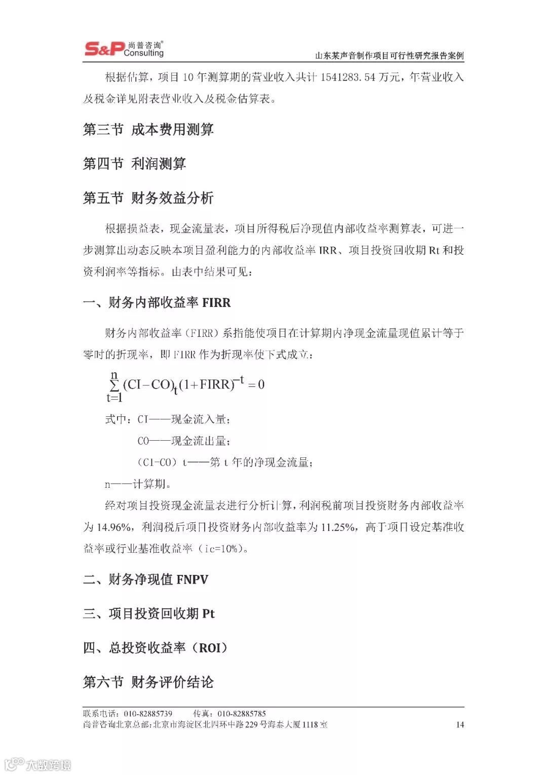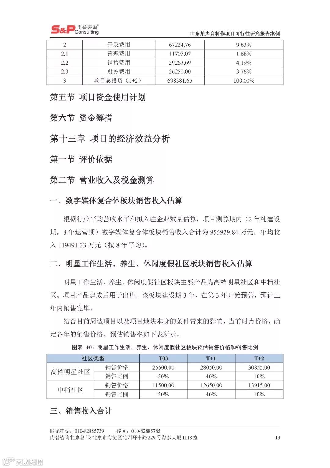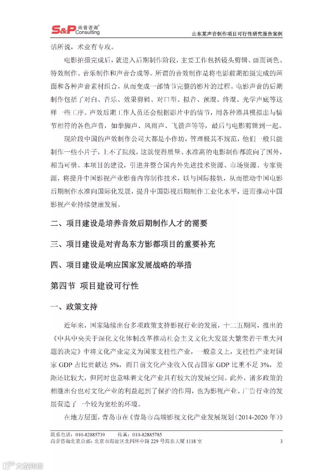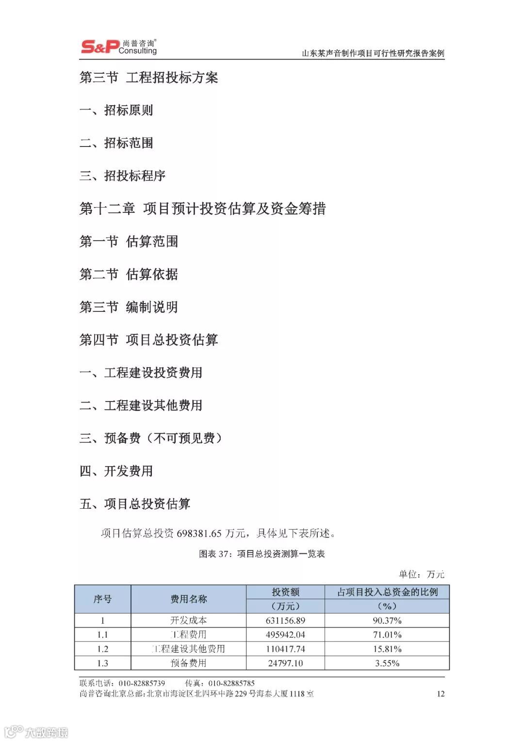山东某声音制作项目可行性研究报告案例 尚普并购咨询