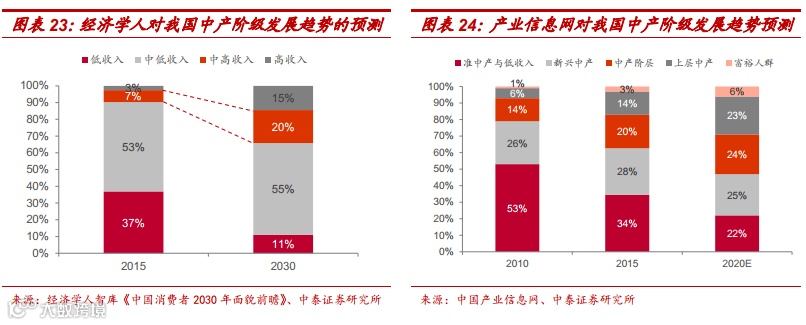 1)按中产阶级。高端酒的消费群体以中产阶级为主,近年来我国中产阶级快速增长,据中国收入分配研究院预计,到 2025 年中国中产阶层占比将超过 50%,若以14亿总人口计算,2025年中产阶层人数将达到7亿以上,而2018年这一数字约为4亿人,2018年高端酒消费量约为6万吨,以此计算2025年高端酒需求将达到10.5万吨,相较于现在仍有很大增长空间;