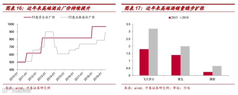 三、白酒: 2016年来白酒强势复苏、高端酒再度迈入奢侈品时代