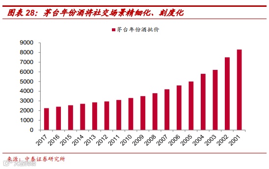 3)投资属性:高端酒保值增值,近年来投资需求兴起。由于茅台等高端酒具有稀缺性,且能够随着时间推移而保值增值,如茅台年份酒越老越值钱,因此具备投资属性,也是高端酒区别于其他白酒的重要特征。近年来投资需求兴起,部分消费者购买高端酒收藏等待增值、或者储存为老酒用于未来消费,因此投资需求成为高端酒需求的另一来源。