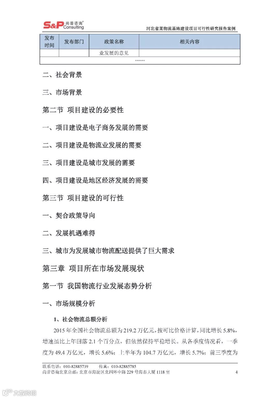 河北省某物流基地建设项目可行性研究报告案例 尚普并购咨询