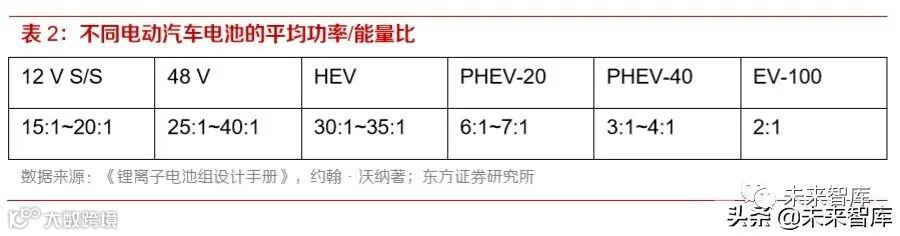 锂电池是有一定差异性的产品,汽车不同的功能需求对于电池的参数有着决定性的影响。粗略来 看,根据使用情况可将锂电池分为两类,一类是功率型,主要用来为汽车加速提供短暂的动力,可 以储存的能量较少,不能长期提供能量,其能量释放时间通常持续几秒到几十分钟;另一类是能量 型,可以长期提供能量,但放电速率相对较小,一般情况下放电时间设计为 1 小时甚至更长,一般 纯电动汽车会用到能量型电池。