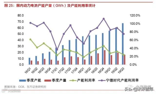 对于流程制造业,规模效应能够提高生产效率,降低生产成本。由于工序能力存在差异,车企倾向 于选择产品一致性更好的供应商,这导致一二线电池企业产能利用率的急剧分化。以 2019 年数据 为例,宁德时代全年出货量达33GWh,产能利用率约75%,其他企业的产能利用率多数徘徊在40% 以下,产能利用率的分化导致了成本差异的增加。2018 年宁德时代动力电池出货量达 23.5GWh, 其折旧总额约 20 亿元,国轩高科出货量 3.1GWh,折旧总额 3.33 亿元,这还不考虑宁德时代折旧 年限较国轩高科短一半。
