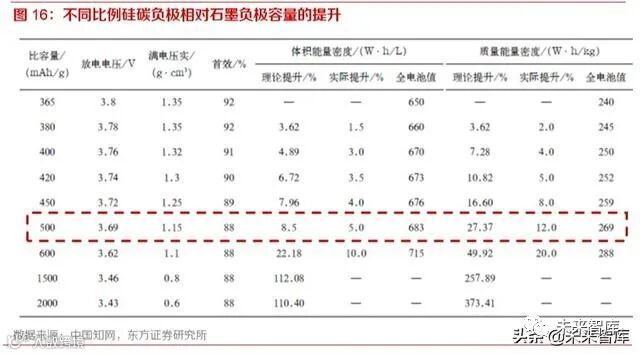 前述的成本敏感性分析表明,改善负极性能也是降低电芯制造成本的有效途径。目前商业化的锂电 池主要以石墨为负极材料,石墨的理论比容量为 372mAh·/g,而市场上的高端石墨材料已经可以 达到 360~365mAh·/g,因此基于石墨负极的锂电池能量密度优化空间相对有限。