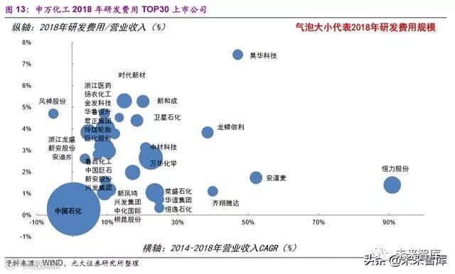 我们本土化工行业的细分龙头们目前都已经具备了较大的体量,但如果 向海外巨头们发起进一步冲击的话,一定要有较强的研发能力作为保障,这 首先要以一定的投入作为前提。我们统计了 2018 年国内研发费用排名前三 十的上市化工企业,这些企业以万华化学、金发科技、荣盛石化、鲁西化工、 中化国际、玲珑轮胎、巨化股份、新和成、安道麦、卫星石化、龙蟒佰利、 中材科技、新安股份、中国巨石、兴发集团和扬农化工等为代表,均是国内 化工企业的细分龙头,也是中国化工行业走向全球的中坚力量。