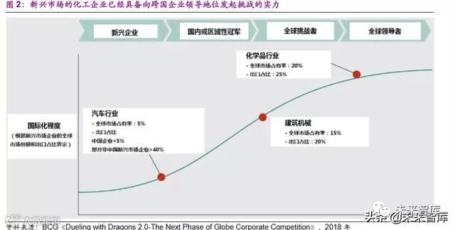 如果新兴市场企业如果能够继续保持过去十几年中的增长,它们的规模 将很快超过跨国公司。但是已经日趋饱和的基础化学品市场显然不是这些新 兴市场企业继续着力的方向。 如陶氏化学的 CEO 利伟诚对中国石油和化学 工业的建议所述,新兴市场的参与者未来创新发展的重点应当放在终端市场 的需求上:“我们认为,中国的石油和化学工业基本上就是一个基础原材料 工业,你们离终端市场太远。其实终端市场技术水平不低,经济效益不差。中国石油和化学工业的发展,应该大胆拥抱终端市场”。
