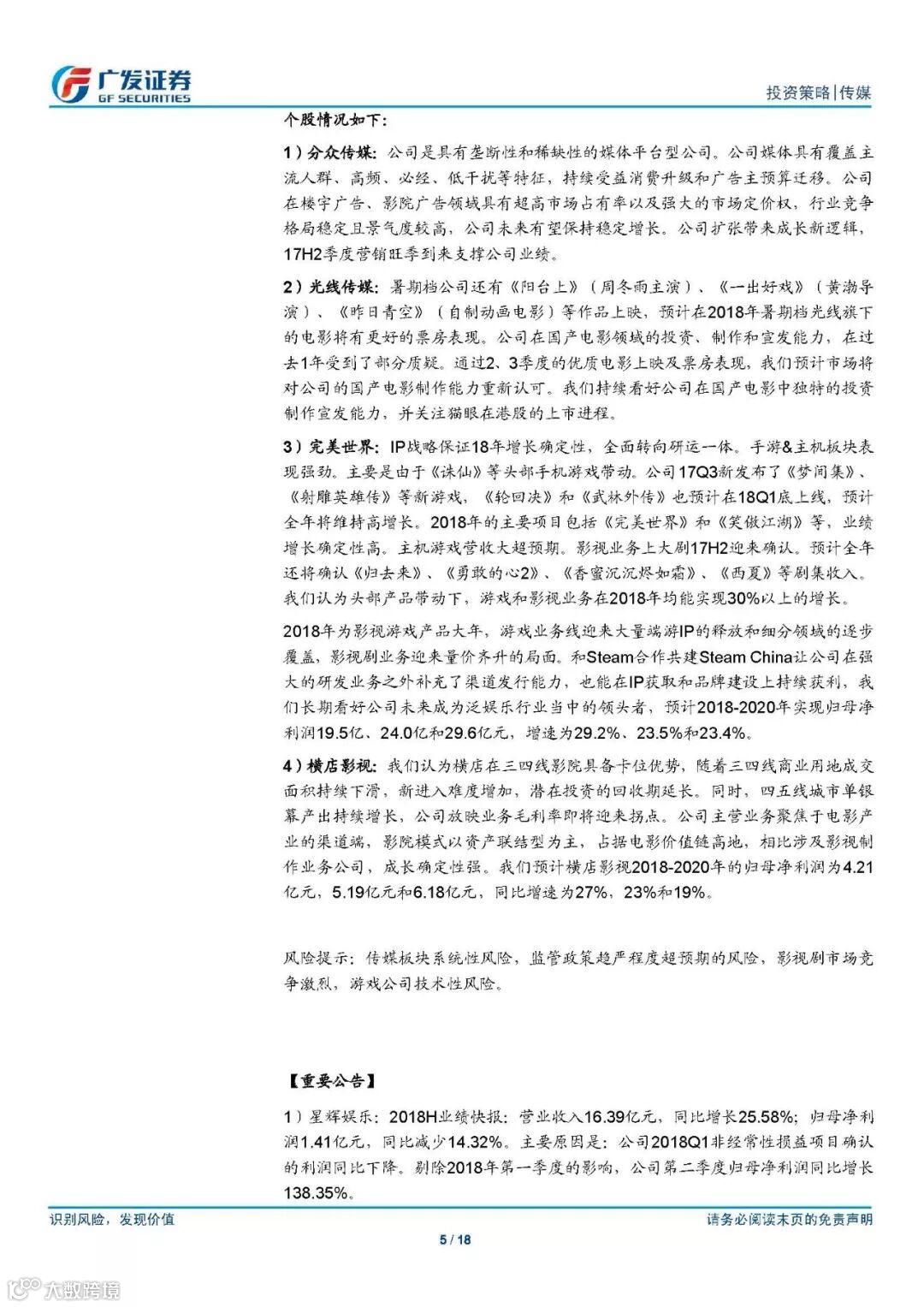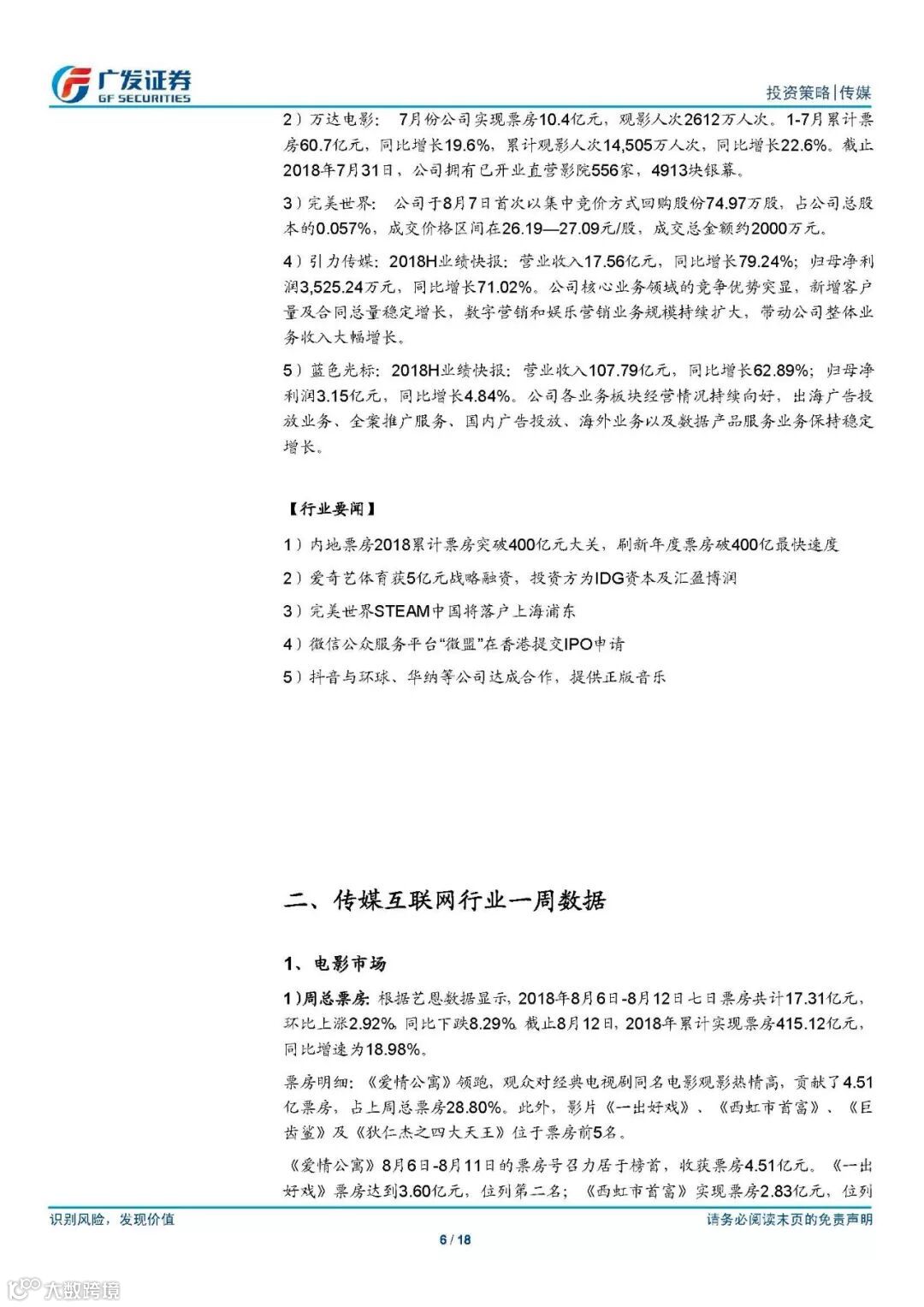 2018年传媒行业评论报告