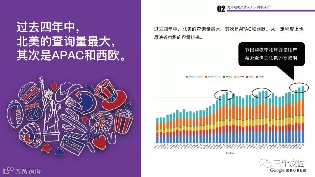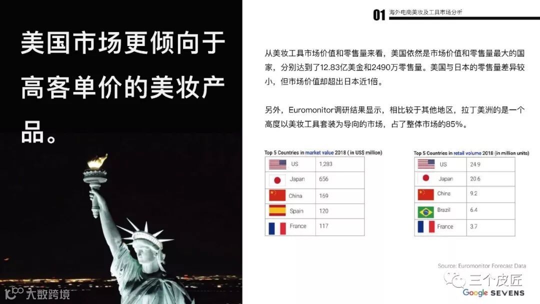 2018年,全球彩妆化妆品市场容量达到702亿美元,预计2025年将达到893亿美元,美妆工具销售额超过32亿美元,全球美妆工具搜索量超过8亿次。美国仍稳坐全球第一大化妆品市场。2018年北美地区美妆工具类市场规模为13.5亿美元,占全球市场的45%。