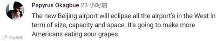 “新的北京机场不论从大小、吞吐量还是空间上来说,都会让西方所有机场相形见绌,会有更多美国人酸掉牙。”
