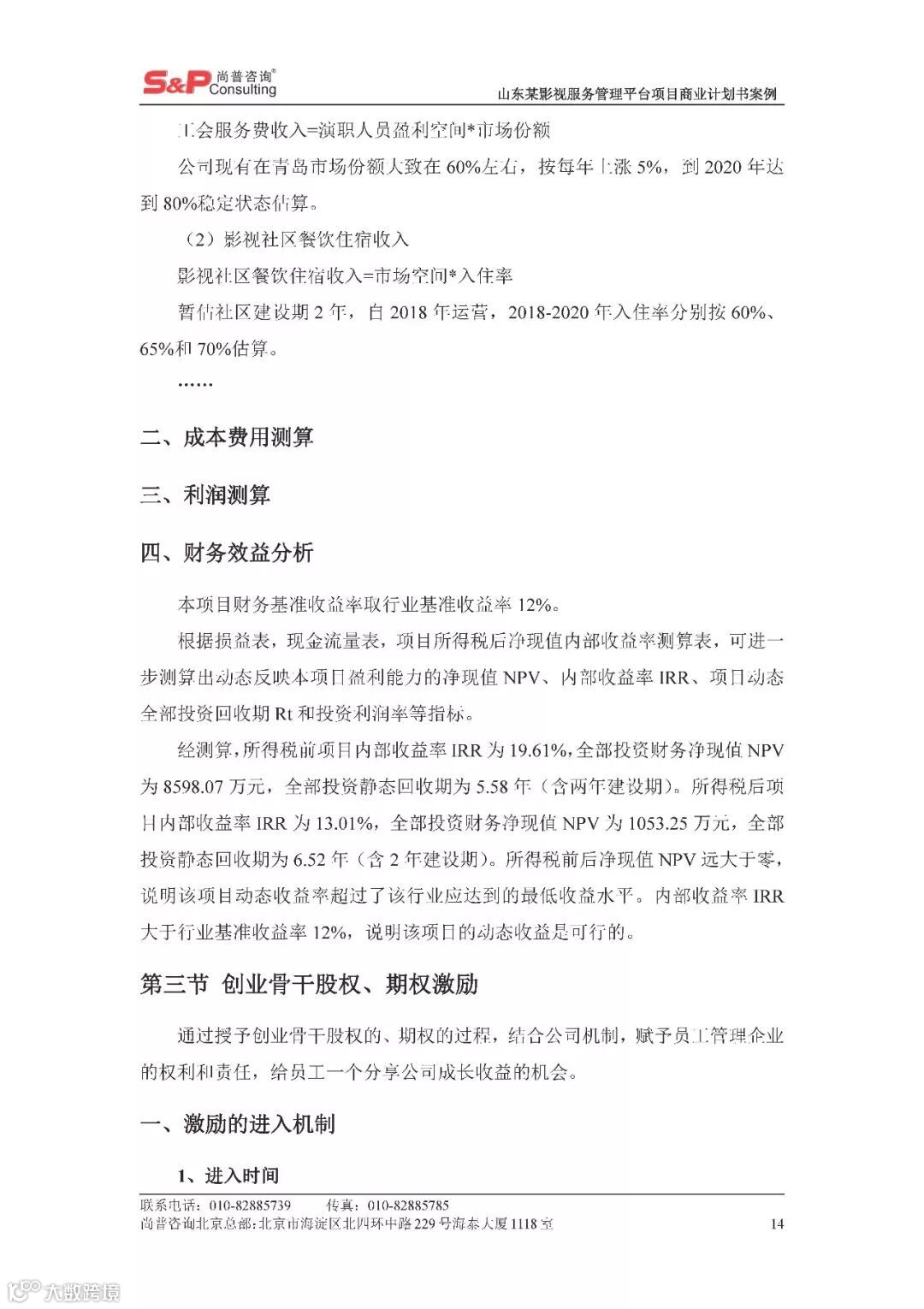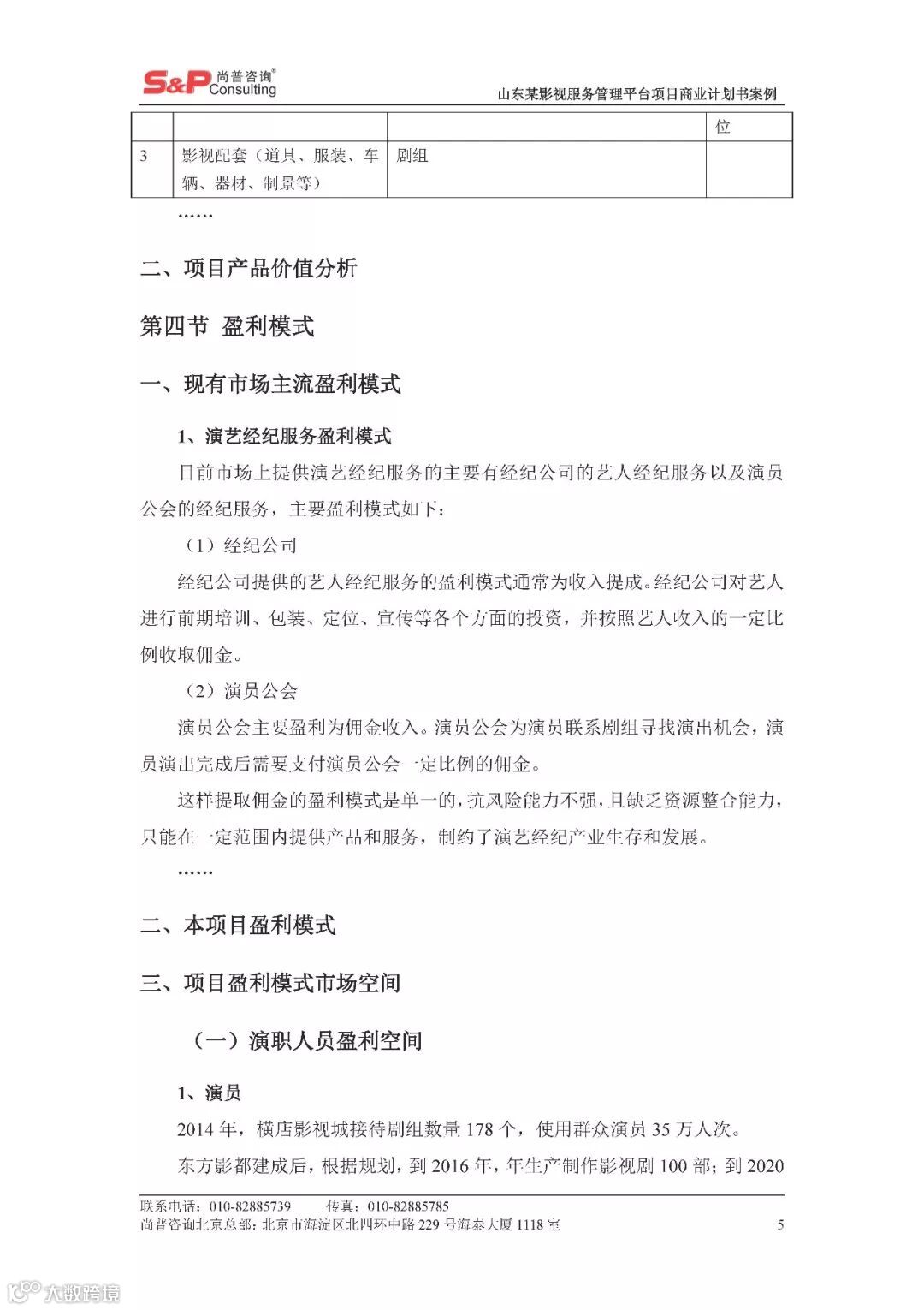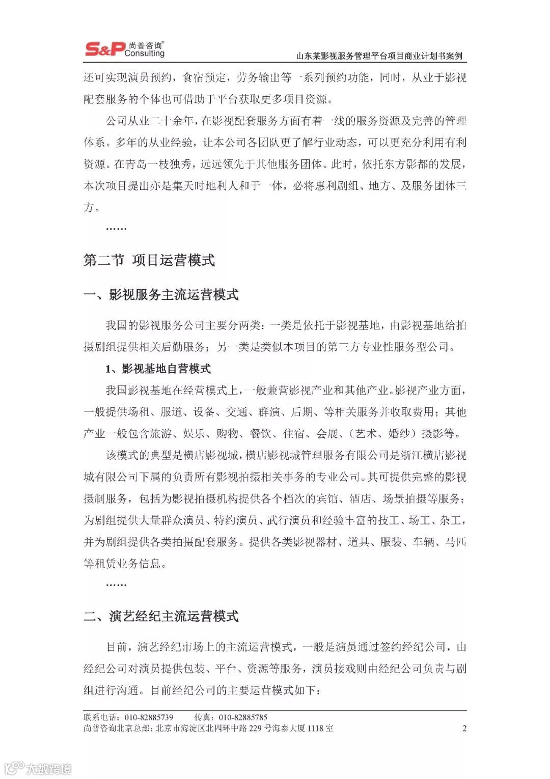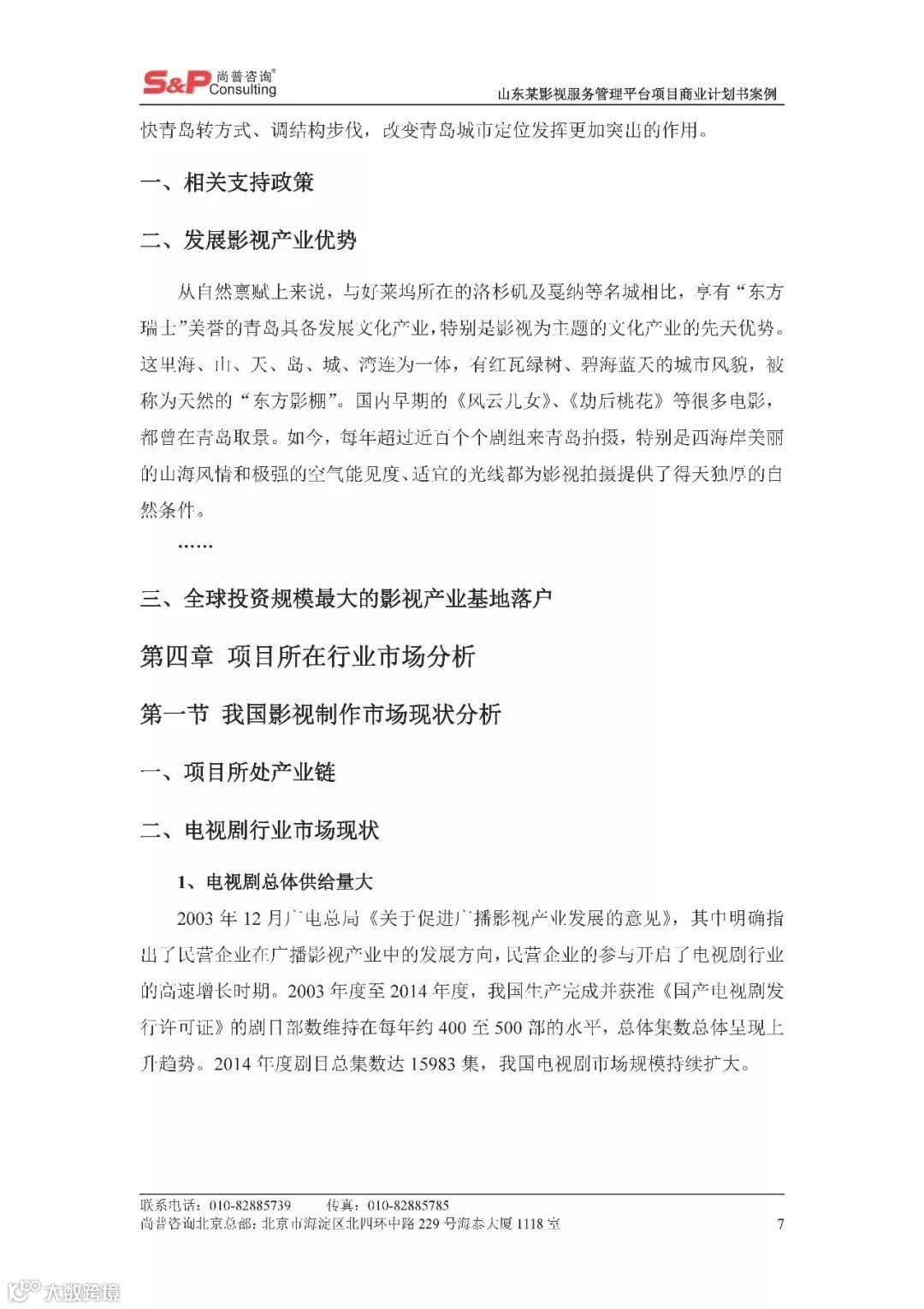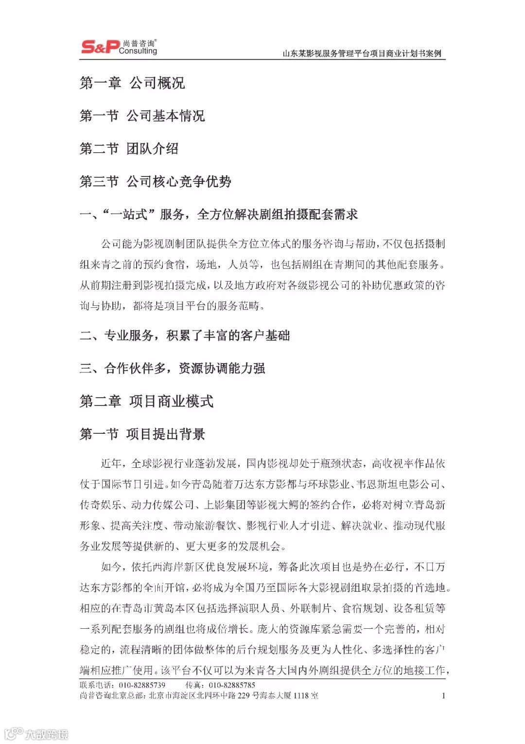山东某影视服务管理平台项目商业计划书案例 尚普并购咨询