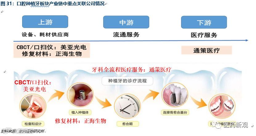 5.产业链:核心种植体由外资垄断,修复材料加速国产渗透,检测设备实现低端替代