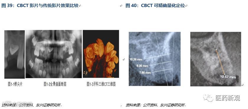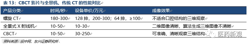 与全景机、传统螺旋 CT 相比,CBCT在口腔医疗应用中优势更加明显,价格相对昂贵。