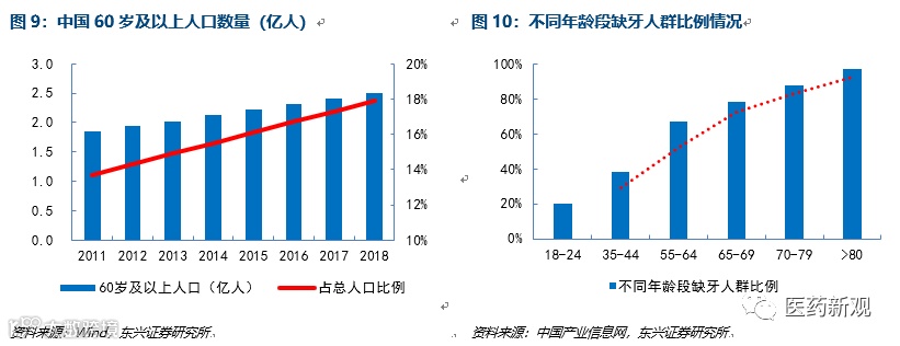 3.需求端:中国中老年人群总计缺牙数达到22.88亿颗,平均修复治疗率低