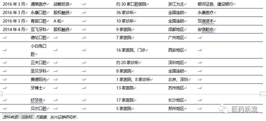 口腔行业融资热度依旧。由于我国潜在消费人群基数大,随着国内居民口腔医疗消费的升级,口腔医疗行业的巨大发展空间持续释放,同时,国家层面也出台相应政策鼓励社会资本办医,投资机构纷纷深入布局。
