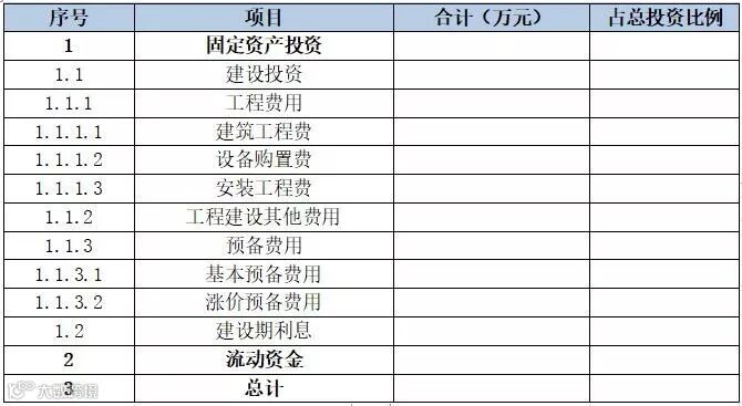 项目总投资估算额为*****万元。其中项目建筑工程费****万元,设备购置费****万元,安装工程费****万元;工程建设其他费用****万元(包括土地使用费****万元);预备费用****万元;建设期利息****流万元;动资金****万元。项目资金来源包括银行贷款****元,贷款期限十年,剩余资金来自企业自筹。