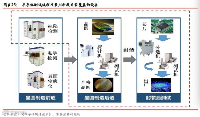 长川科技目前主导产品为测试机、分选机和探针台等,在国内市场中产品链较为完整,产品可以覆盖晶圆制造和封测两大工序环节。同时受益于国内芯片设计产业的国产化需求上升,公司后续有望取得技术水平的提升,并有望进一步扩大产品覆盖范围。