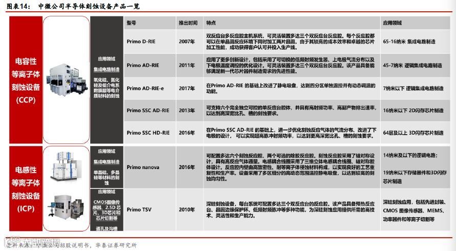 中微公司专注于集成电路、LED 关键制造设备,核心产品包括:1)用于IC 集成电路领