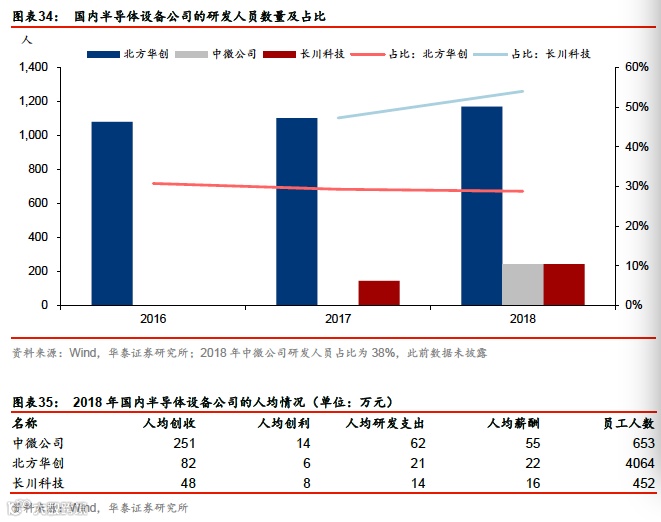 技术研发团队是半导体设备企业的灵魂,本土企业的技术追赶需要凝聚一批国内外顶尖的技术人才,因此建立在全球范围内具备竞争力的激励机制是推动公司及行业发展的必要举措,本土企业的现有机制还有待于进一步优化。科创型企业中技术和管理人员比例较高,人才是构建科创型企业核心竞争力的根本、资本增值的源泉、企业成长壮大的生命线。我们认为,行业对专业技术人才的需求与日俱增,人才竞争不断加剧,具有国际竞争力的薪酬制度、有效的持股激励制度等举措对于提升员工的积极性和创造性、吸引国内外一流技术人才至关重要。