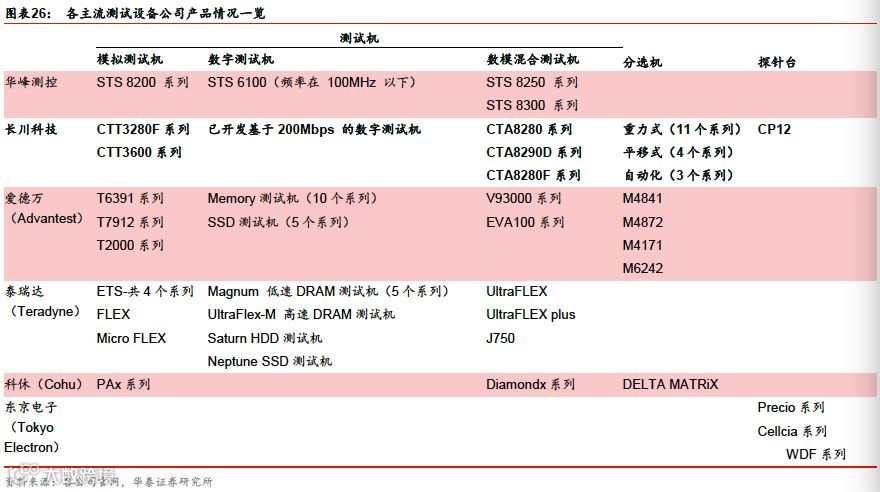 1)在数字测试机方面:据公司2019 中报,公司目前已成功研制并开发了基于200Mbps数字测试速率、1G 向量深度以及128A 电流测试能力的数字测试机。